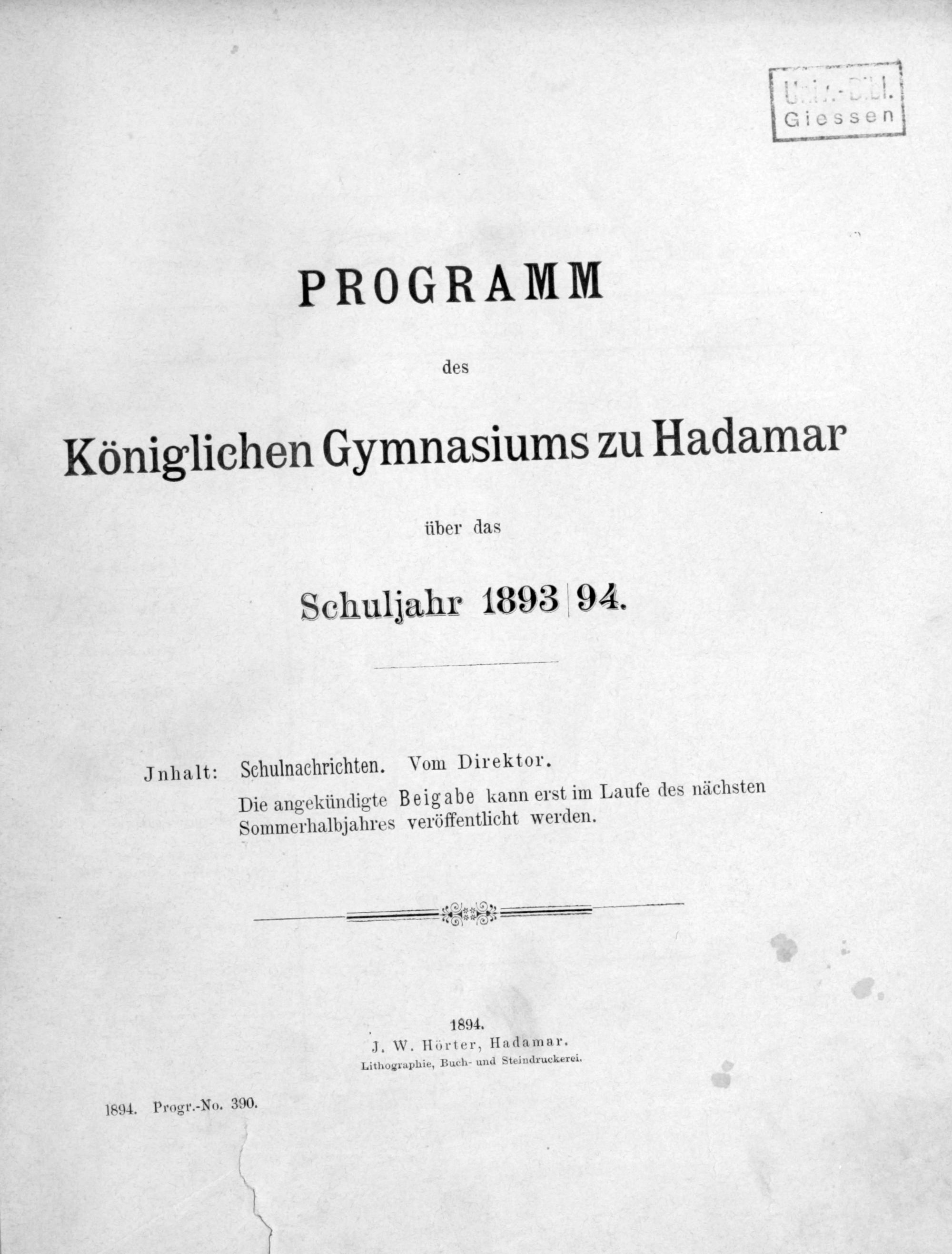 Programm des Königlichen Gymnasiums zu Hadamar