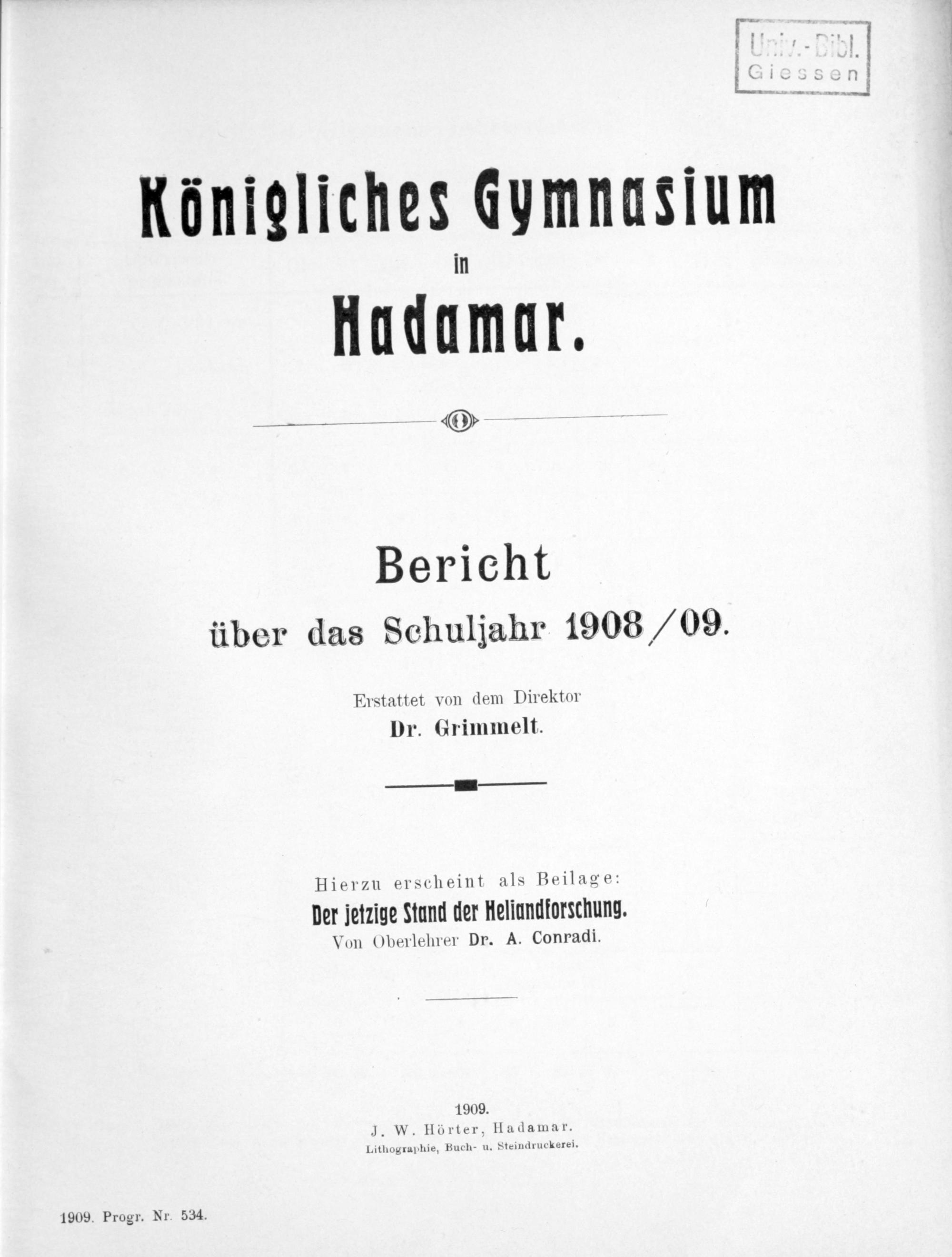 Kanon der Jahreszahlen. Zusammengestellt für die Schüler des Königl. Gymnasiums zu Hadmar
