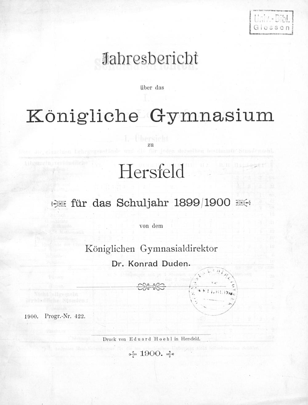 Jahresbericht über das Königliche Gymnasium zu Hersfeld