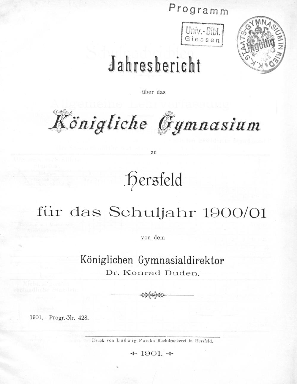 Jahresbericht über das Königliche Gymnasium zu Hersfeld