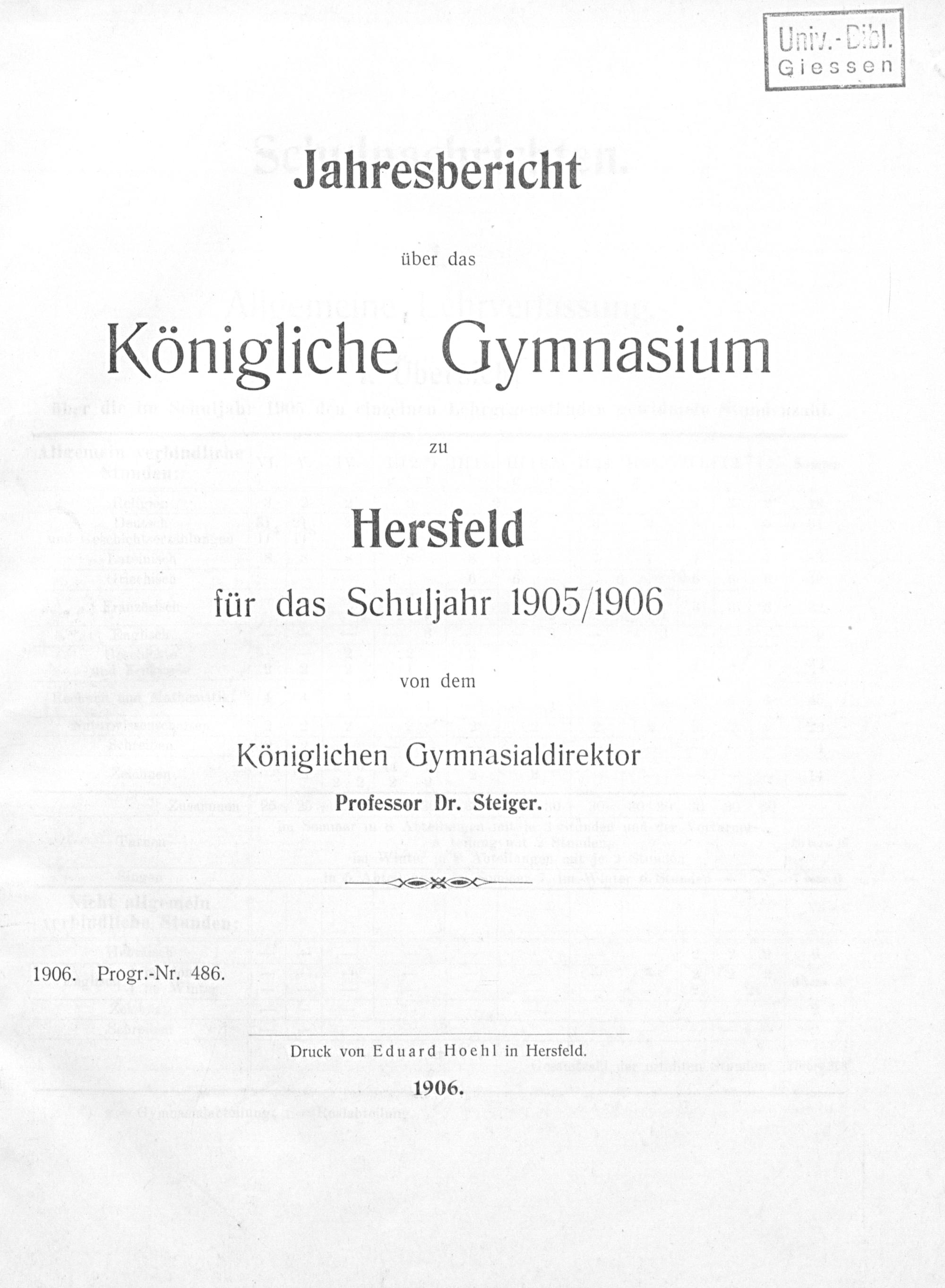 Jahresbericht über das Königliche Gymnasium zu Hersfeld