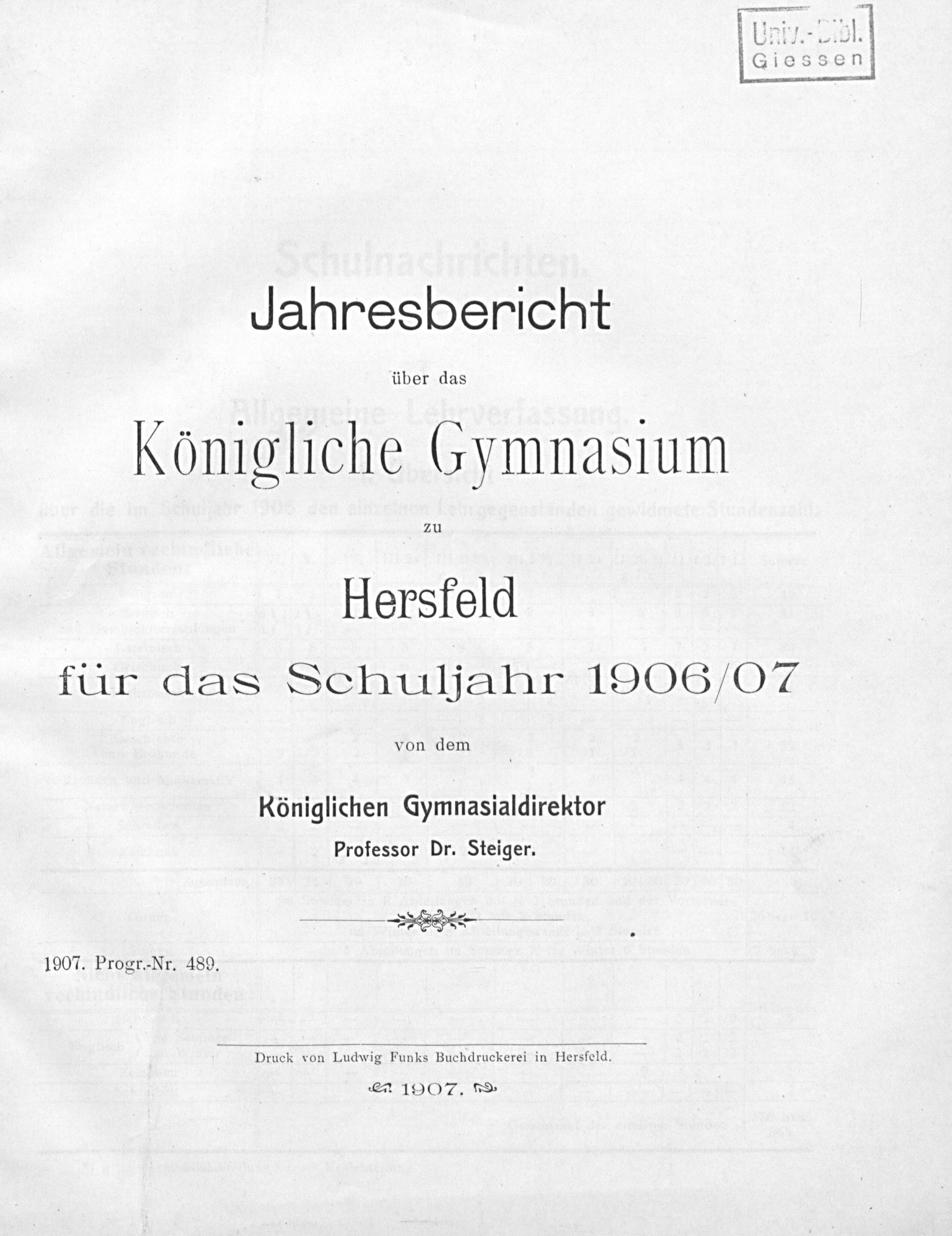 Jahresbericht über das Königliche Gymnasium zu Hersfeld