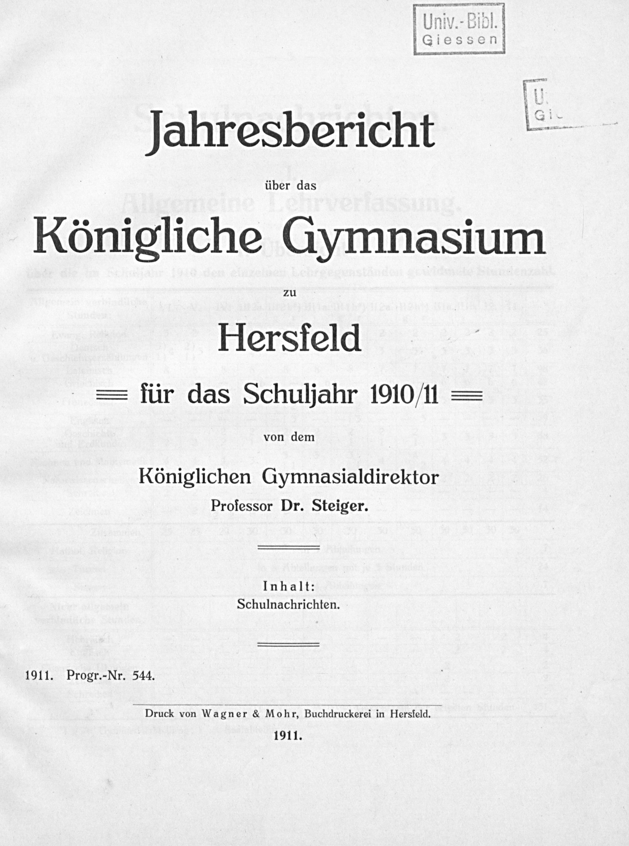 Jahresbericht über das Königliche Gymnasium zu Hersfeld