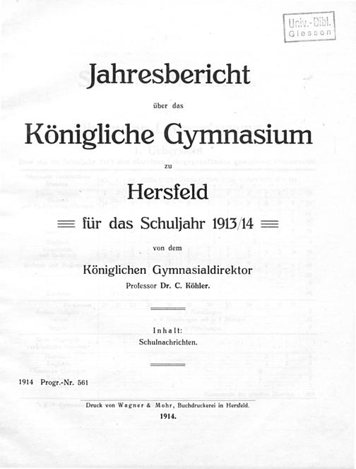Jahresbericht über das Königliche Gymnasium zu Hersfeld
