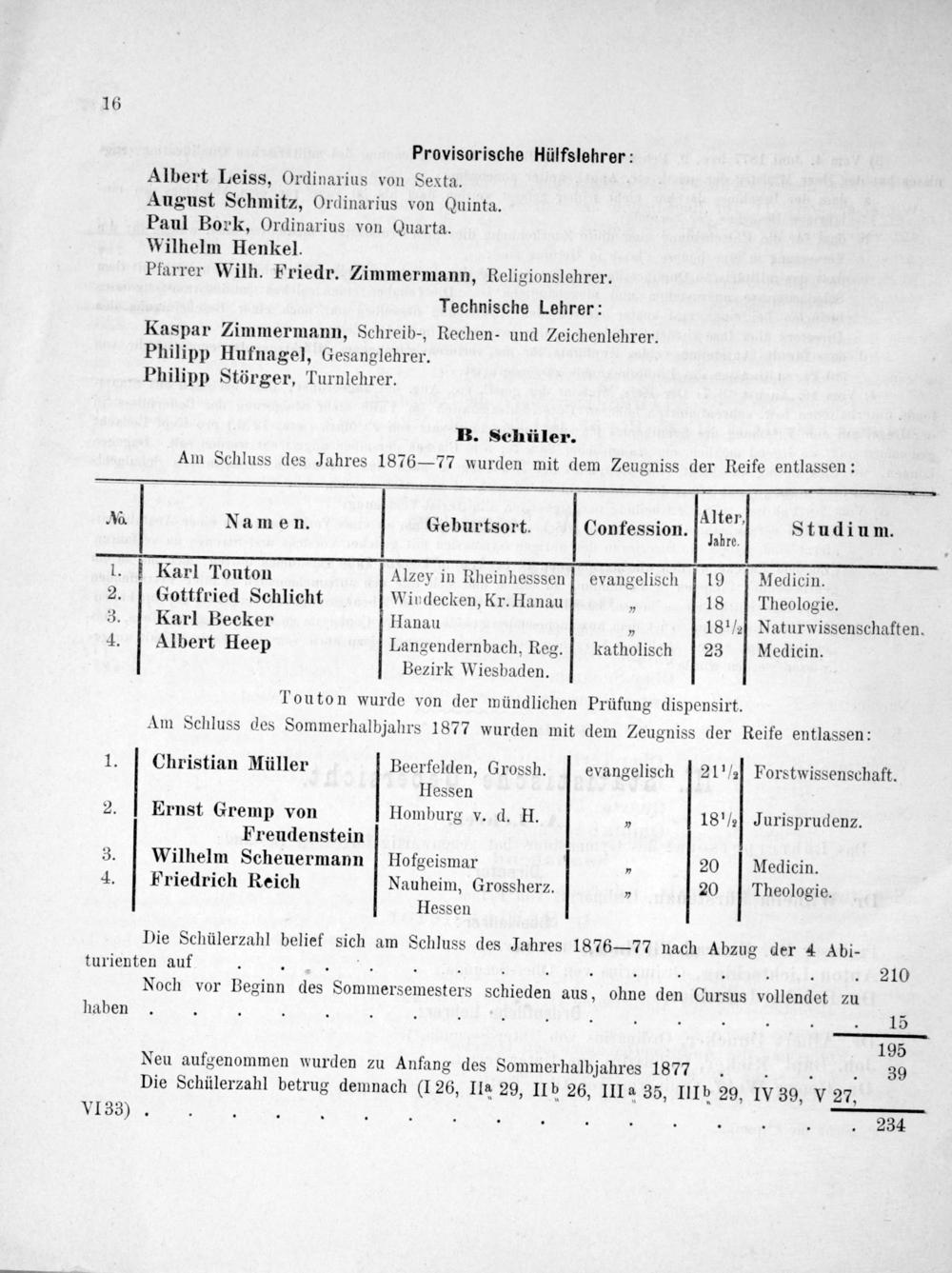Kurze Übersicht über die Geschichte der Bibliothek des Königlichen Gymnasiums zu Hanau und Verzeichnis der alten Drucke derselben bis zur Mitte des 16. Jahrhunderts