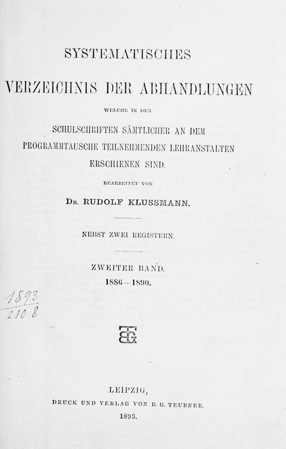 Systematisches Verzeichnis der Abhandlungen, welche in den Schulschriften sämtlicher an dem Programmtausche teilnehmenden Lehranstalten erschienen sind