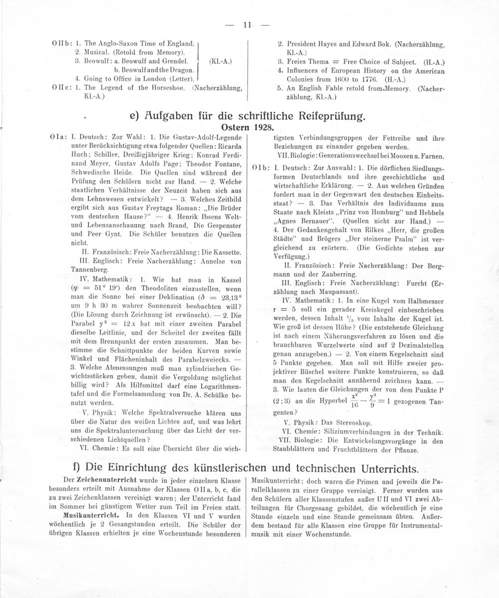 Bericht über das Schuljahr ...