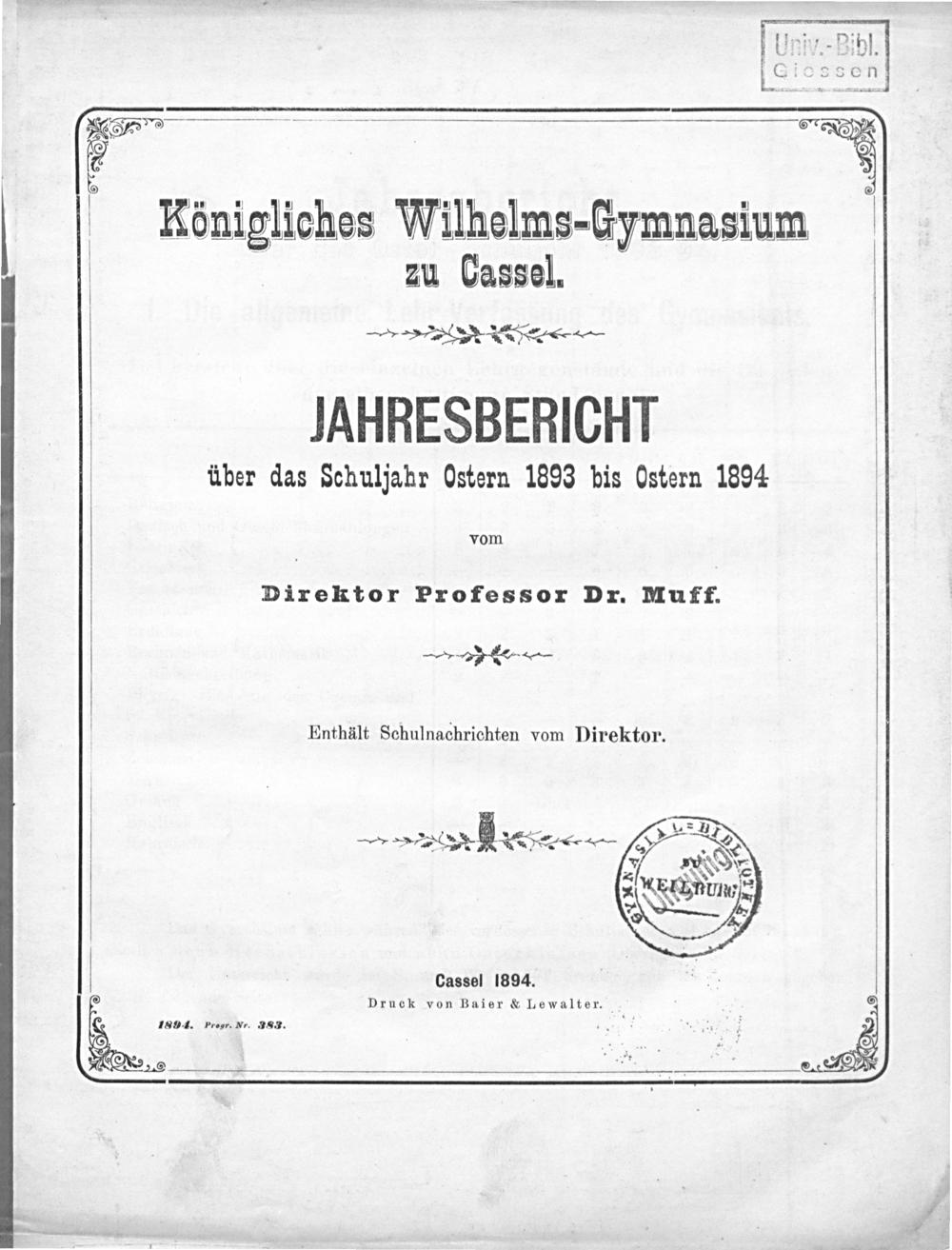 Das neue Königliche Wilhelms-Gymnasium und die Feier der Eröffnung desselben