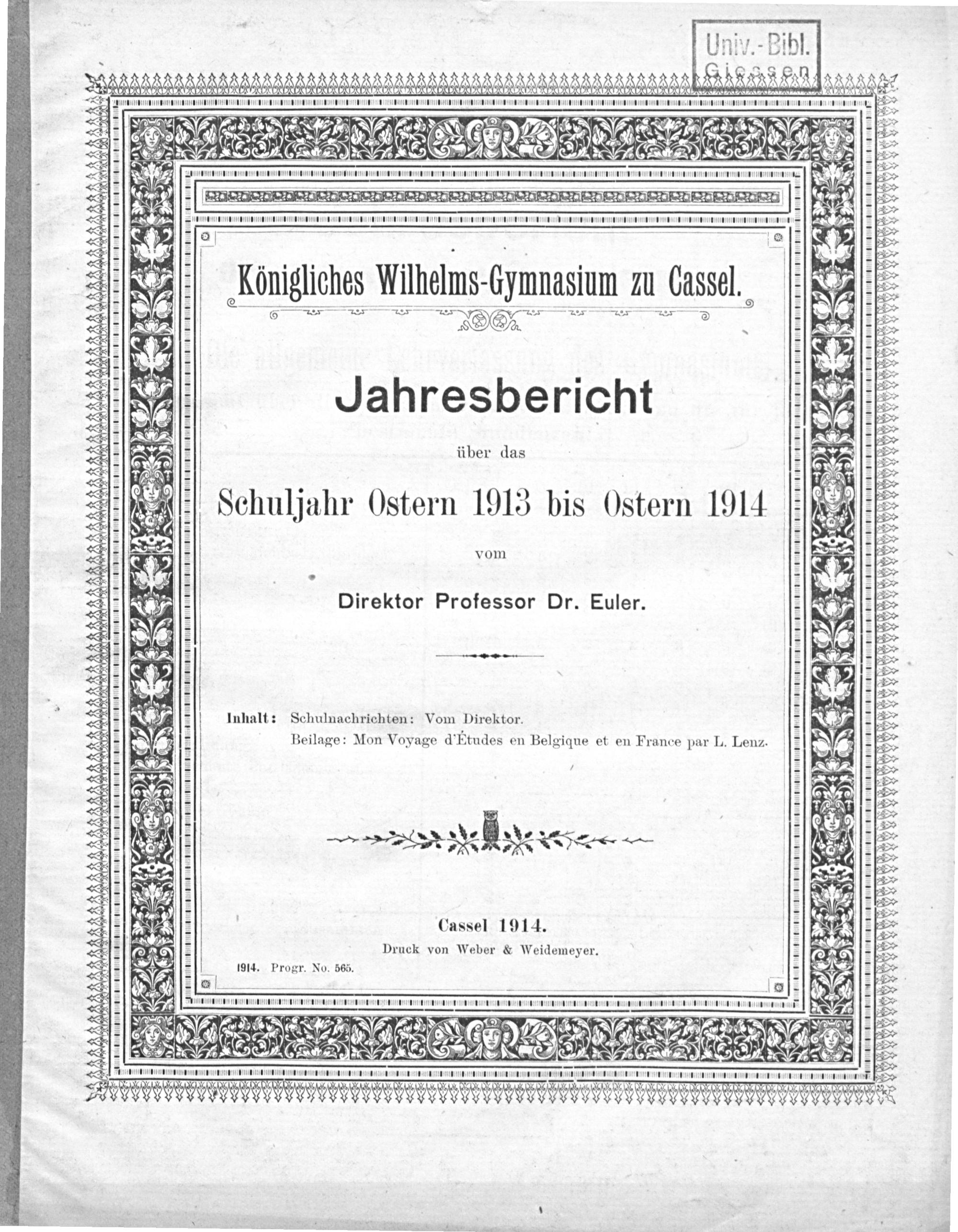 Das neue Königliche Wilhelms-Gymnasium und die Feier der Eröffnung desselben