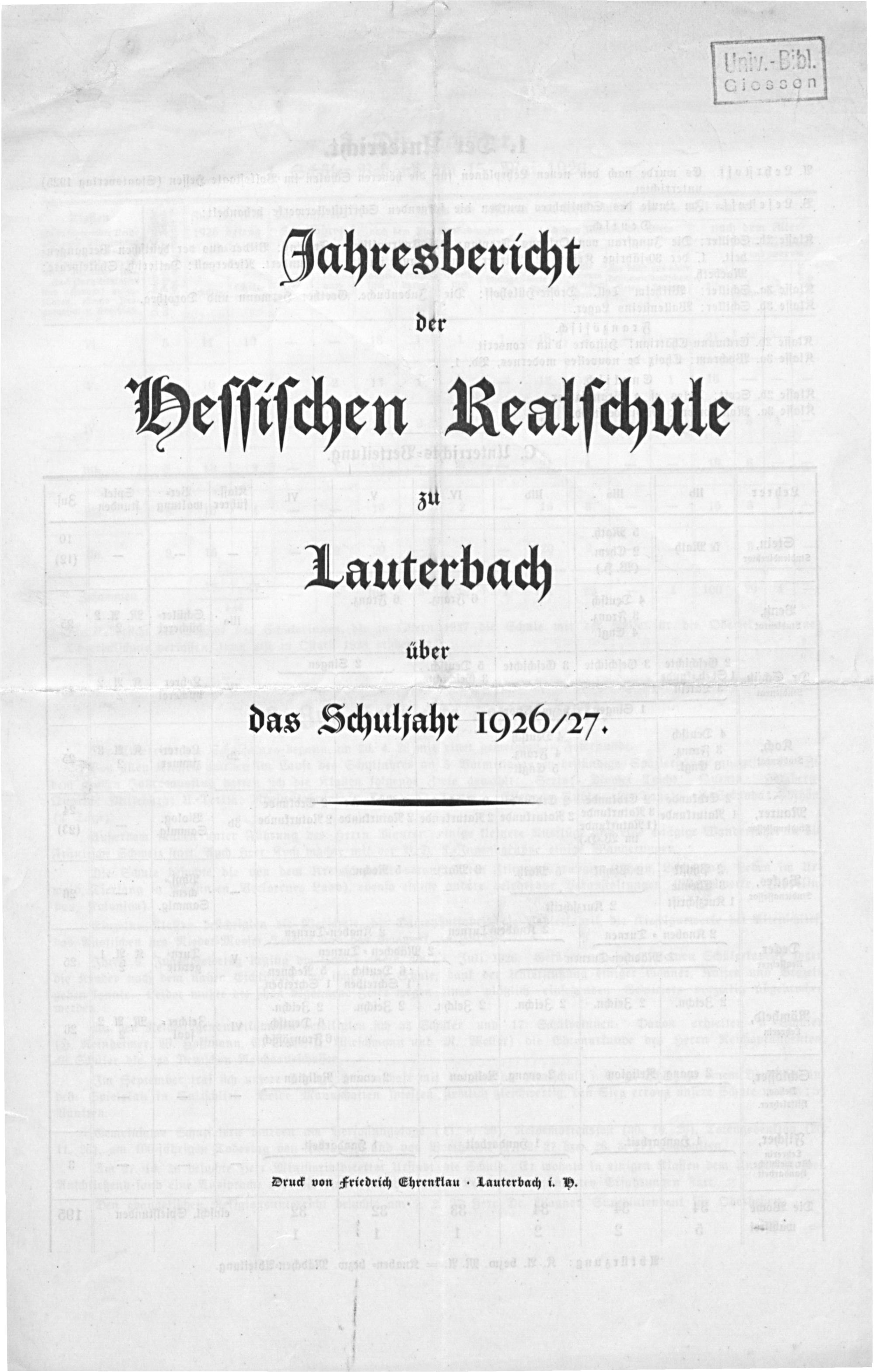 Jahresbericht der Hessischen Realschule zu Lauterbach