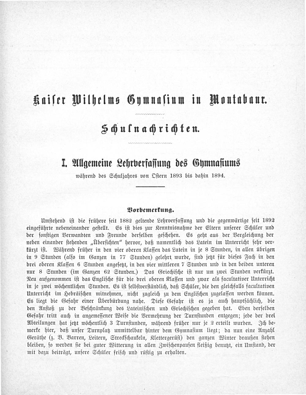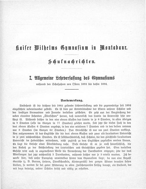 Die ersten 25 Jahre des Kaiser Wilhelms Gymnasiums zu Montabaur