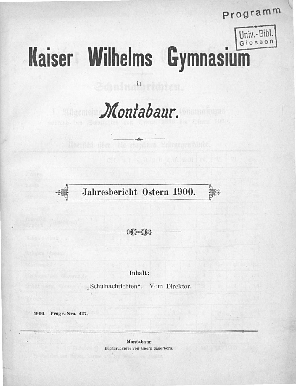 Die ersten 25 Jahre des Kaiser Wilhelms Gymnasiums zu Montabaur