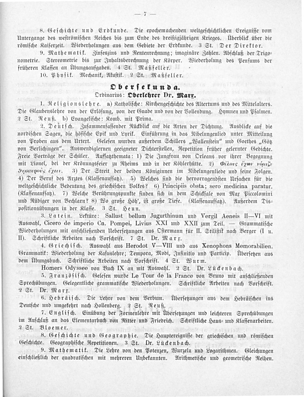 Einige mathematische Aufgaben aus dem Unterrichtsstoff der Obersekunda und Prima des Gymnasiums