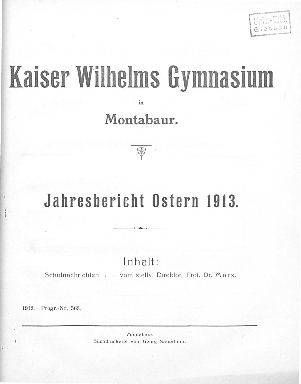 Die ersten 25 Jahre des Kaiser Wilhelms Gymnasiums zu Montabaur