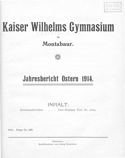 Die ersten 25 Jahre des Kaiser Wilhelms Gymnasiums zu Montabaur