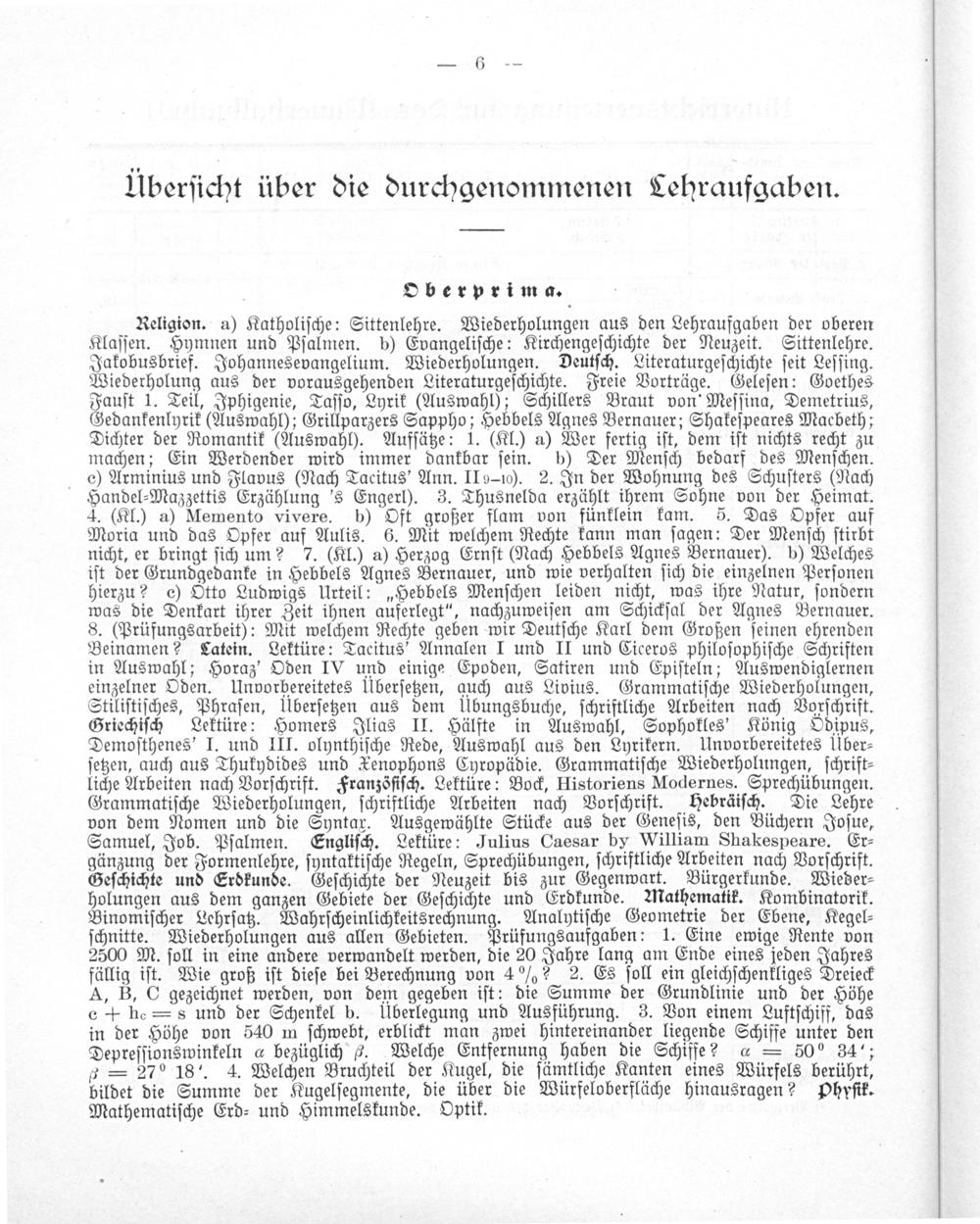 Einige mathematische Aufgaben aus dem Unterrichtsstoff der Obersekunda und Prima des Gymnasiums