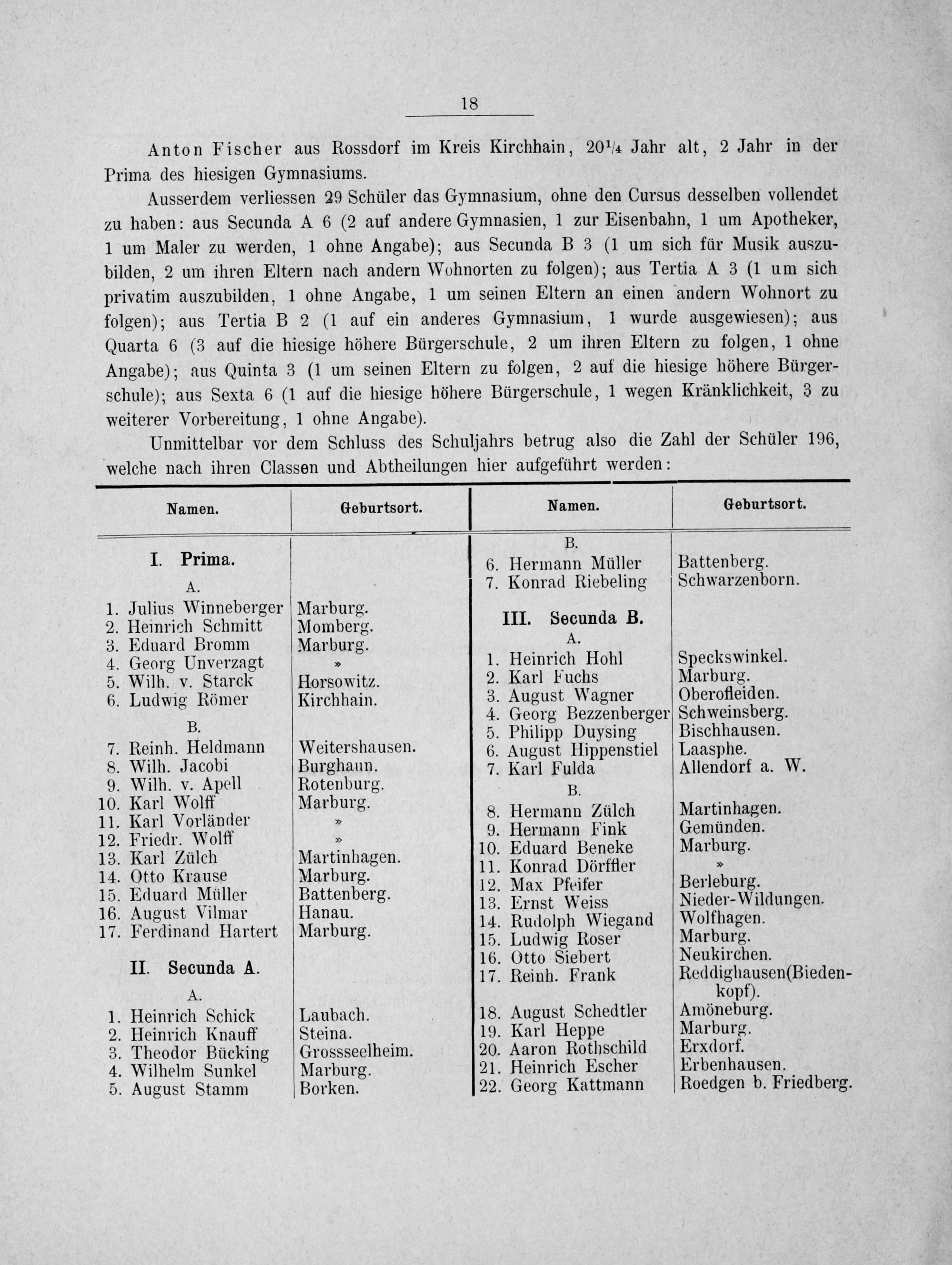 Zu der öffentlichen Prüfung der Schüler des Königlichen Gymnasiums zu Marburg ... ladet ... ein