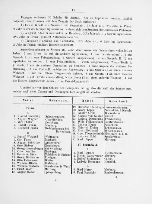 Zu der öffentlichen Prüfung der Schüler des Königlichen Gymnasiums zu Marburg ... ladet ... ein