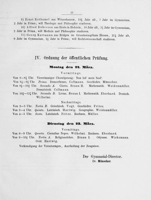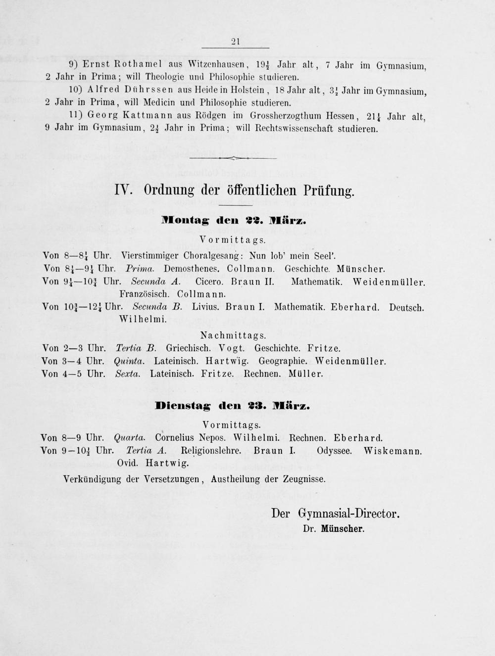 Zu der öffentlichen Prüfung der Schüler des Königlichen Gymnasiums zu Marburg ... ladet ... ein