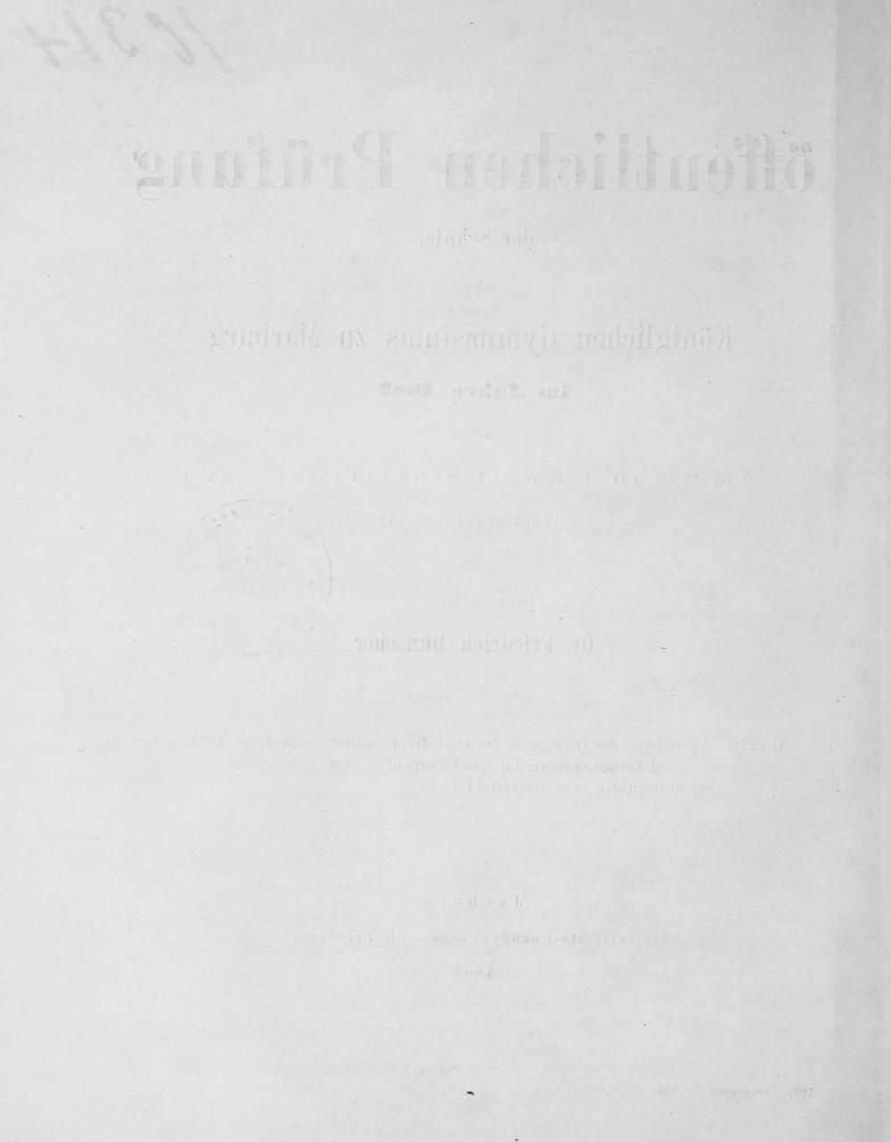 Zu der öffentlichen Prüfung der Schüler des Königlichen Gymnasiums zu Marburg ... ladet ... ein