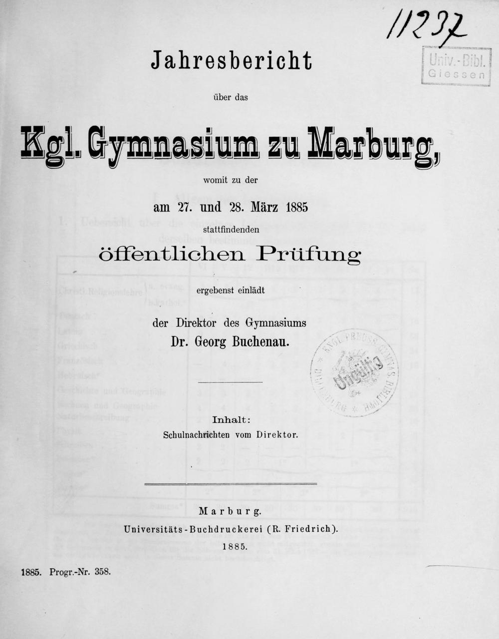 Jahresbericht des Königlichen Gymnasiums zu Marburg