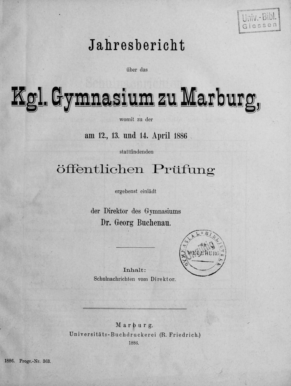 Jahresbericht des Königlichen Gymnasiums zu Marburg