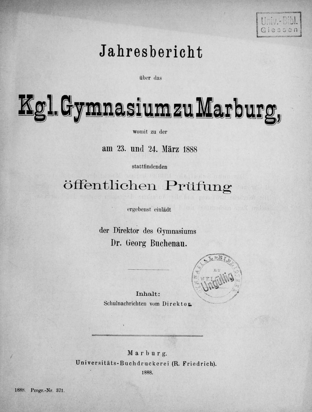 Jahresbericht des Königlichen Gymnasiums zu Marburg