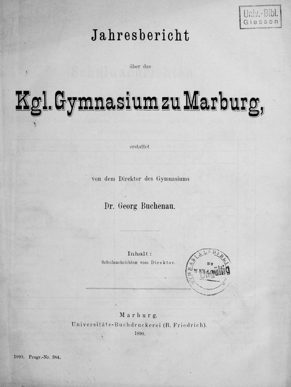 Jahresbericht des Königlichen Gymnasiums zu Marburg