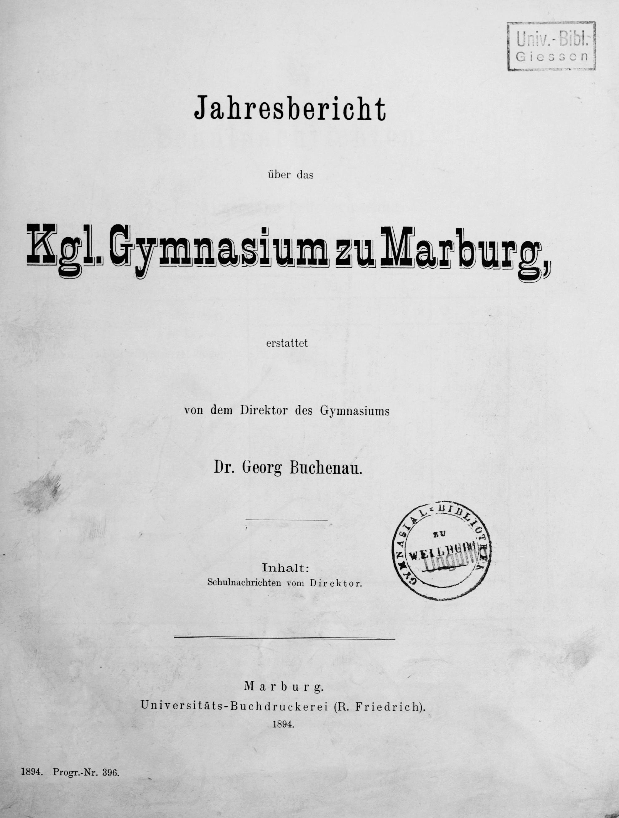 Jahresbericht des Königlichen Gymnasiums zu Marburg