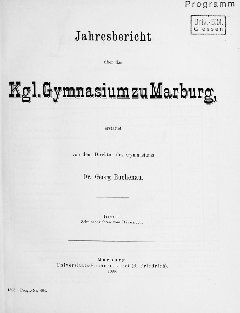 Jahresbericht des Königlichen Gymnasiums zu Marburg