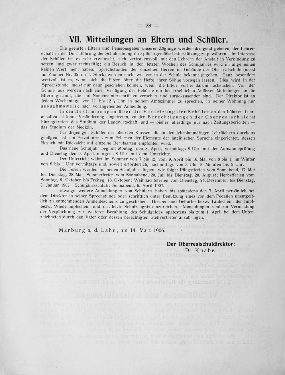 Die Entwicklung der Realanstalt zu Marburg