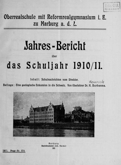 Die Entwicklung der Realanstalt zu Marburg