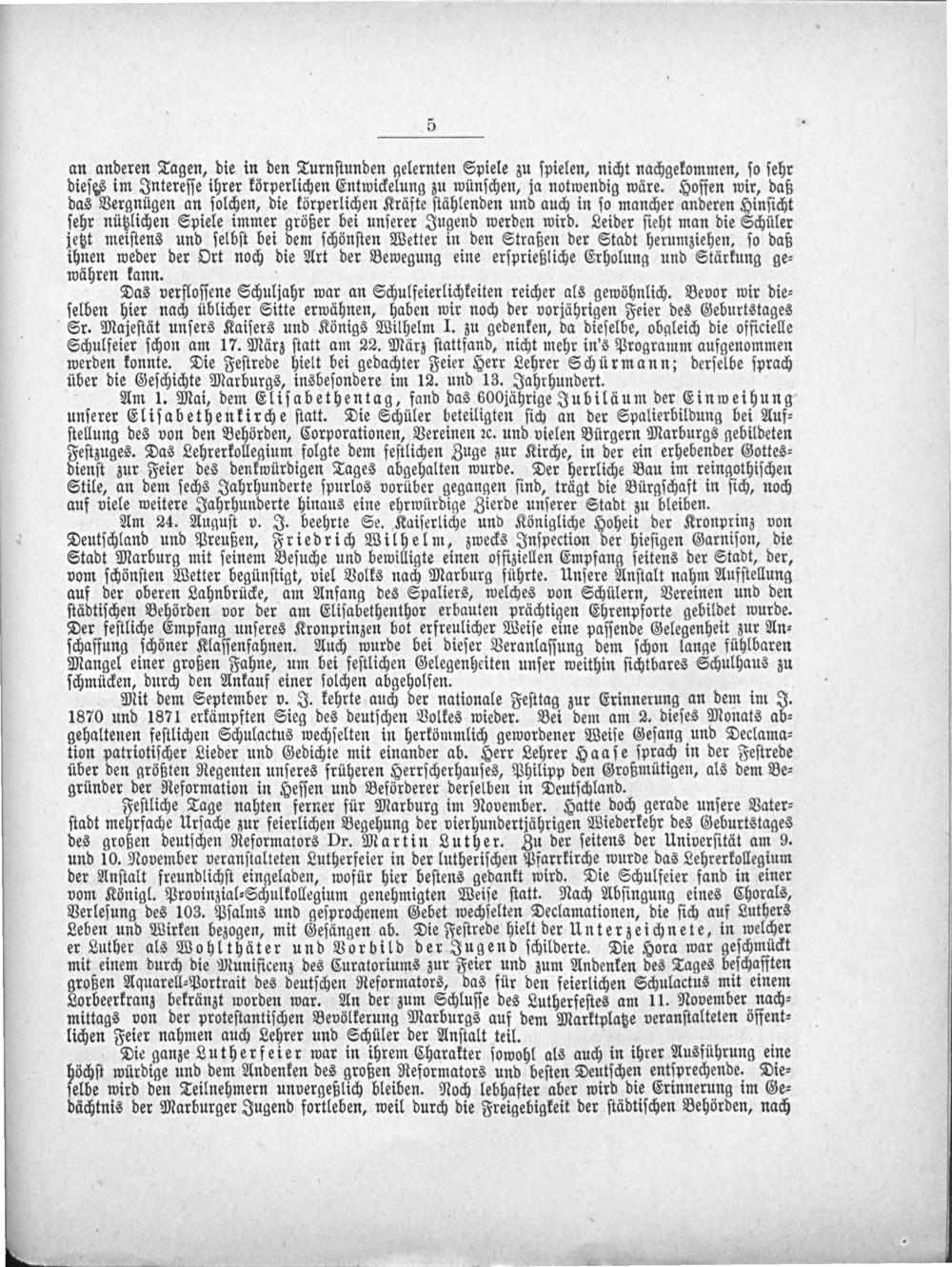 Programm des Realprogymnasiums (Realgymnasium ohne Prima) in Marburg