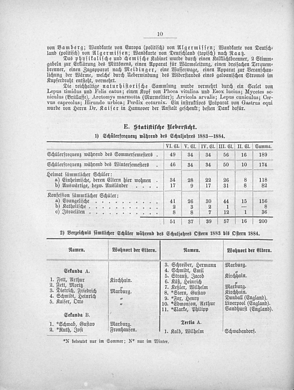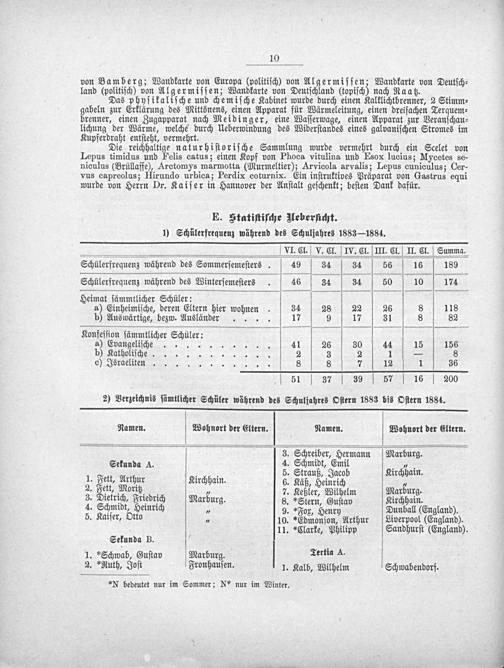 Programm des Realprogymnasiums (Realgymnasium ohne Prima) in Marburg