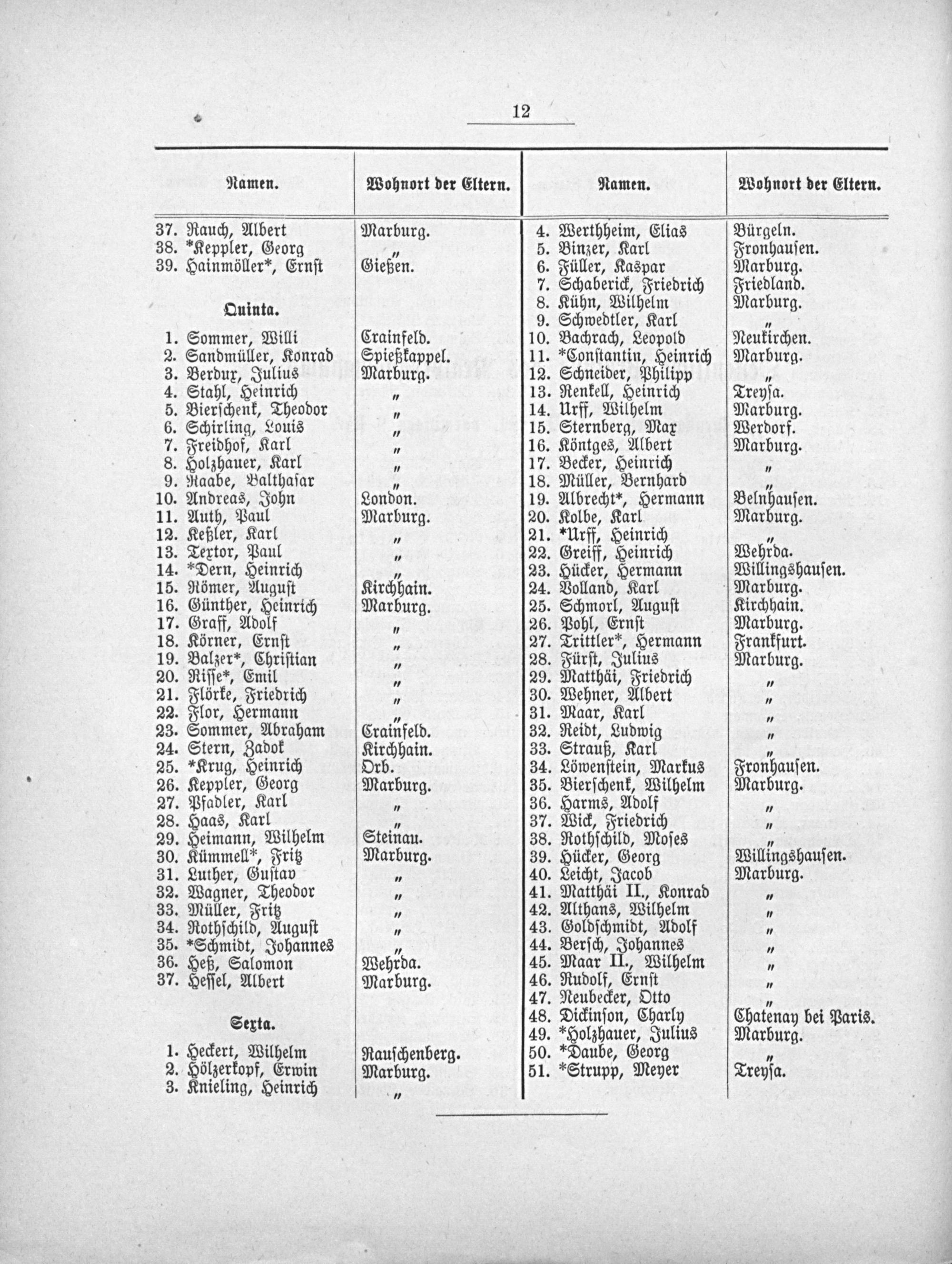 Programm des Realprogymnasiums (Realgymnasium ohne Prima) in Marburg