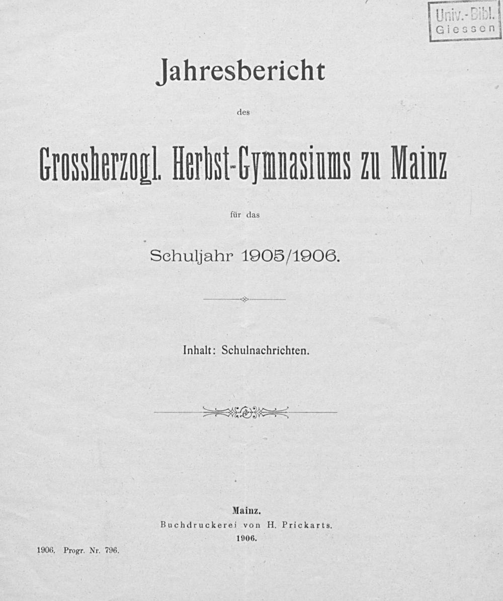 Jahresbericht des Grossherzogl. Herbst-Gymnasiums in Mainz für das Schulhalbjahr ...