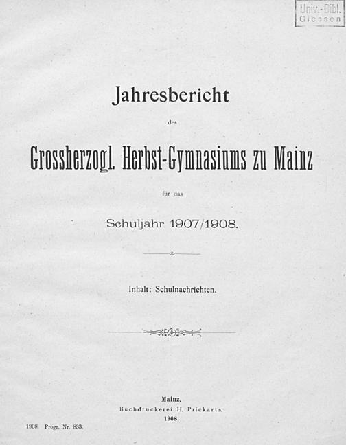 Jahresbericht des Grossherzogl. Herbst-Gymnasiums in Mainz für das Schulhalbjahr ...