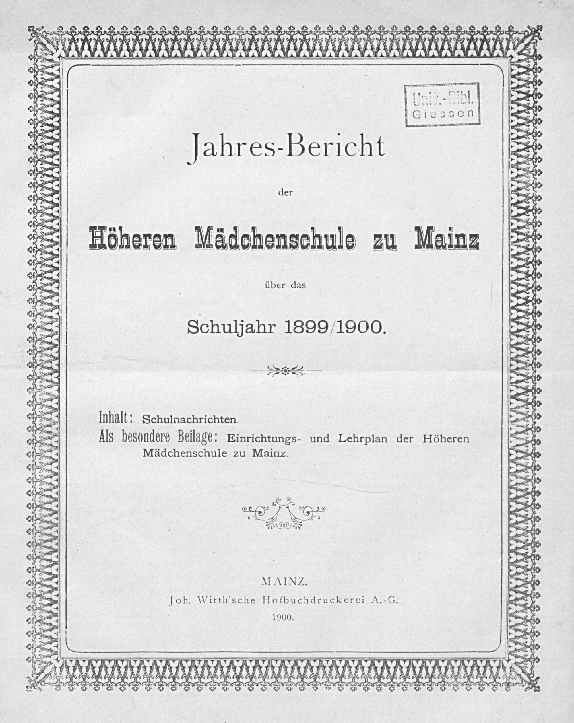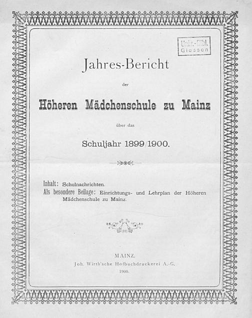 Jahres-Bericht der Höheren Mädchenschule zu Mainz über das Schuljahr ...