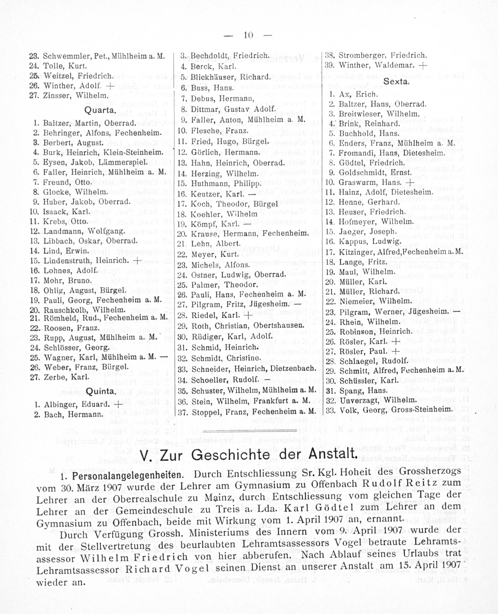 Zur Geschichte der Offenbacher Lateinschule