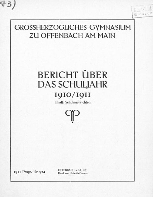 Der Neubau des Gymnasiums zu Offenbach a.M. Vom Großhezogl. Bauinspektor Reuling