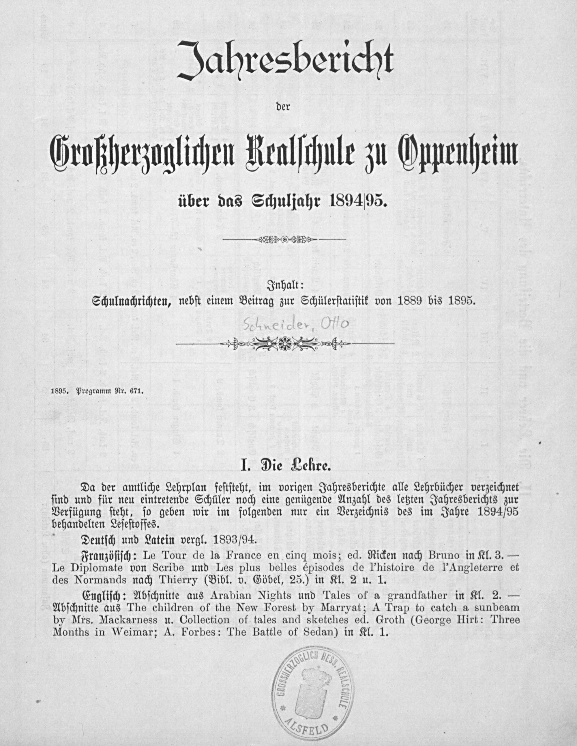 Bericht über das Schuljahr ...