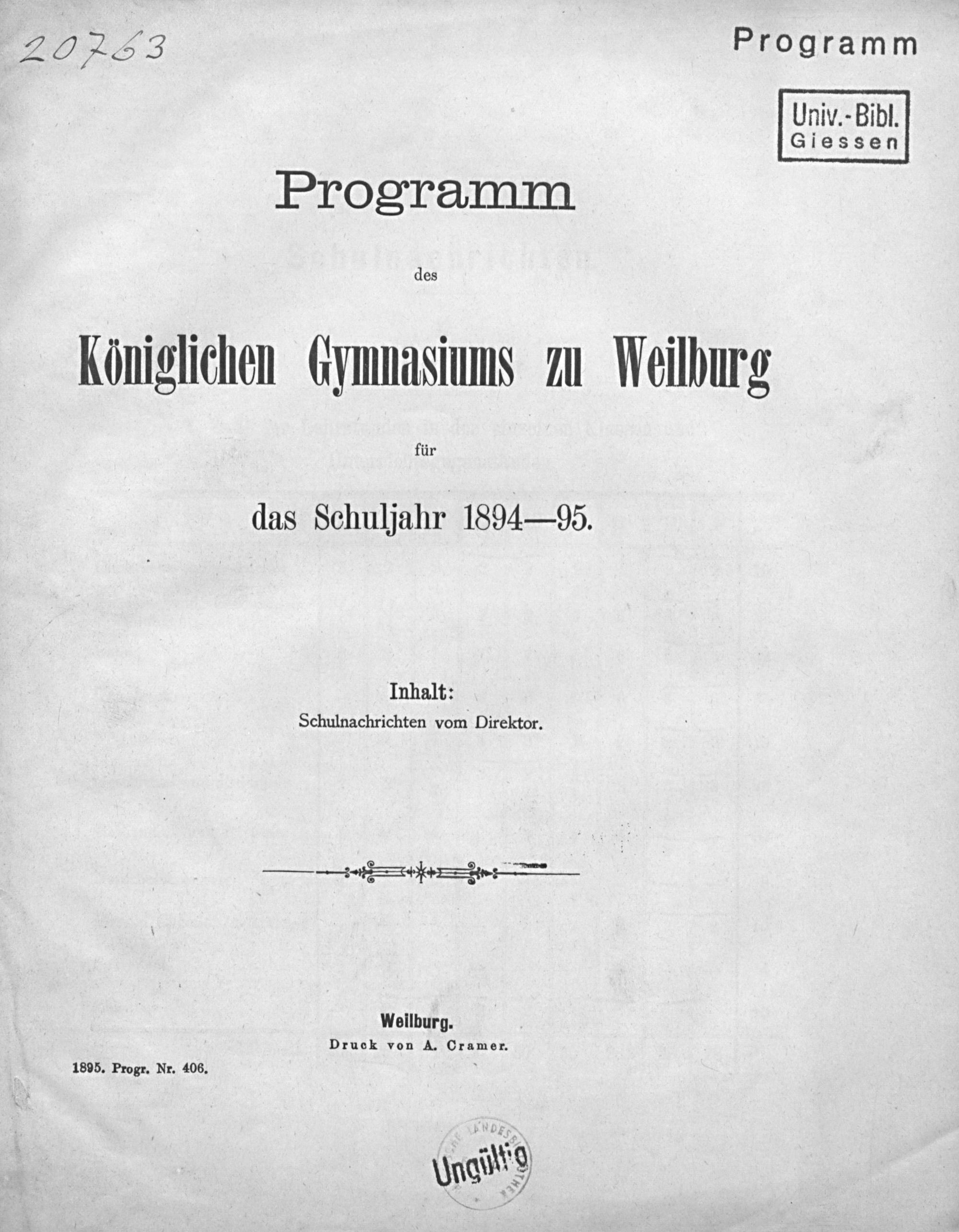 Programm des Königlichen Gymnasiums zu Weilburg