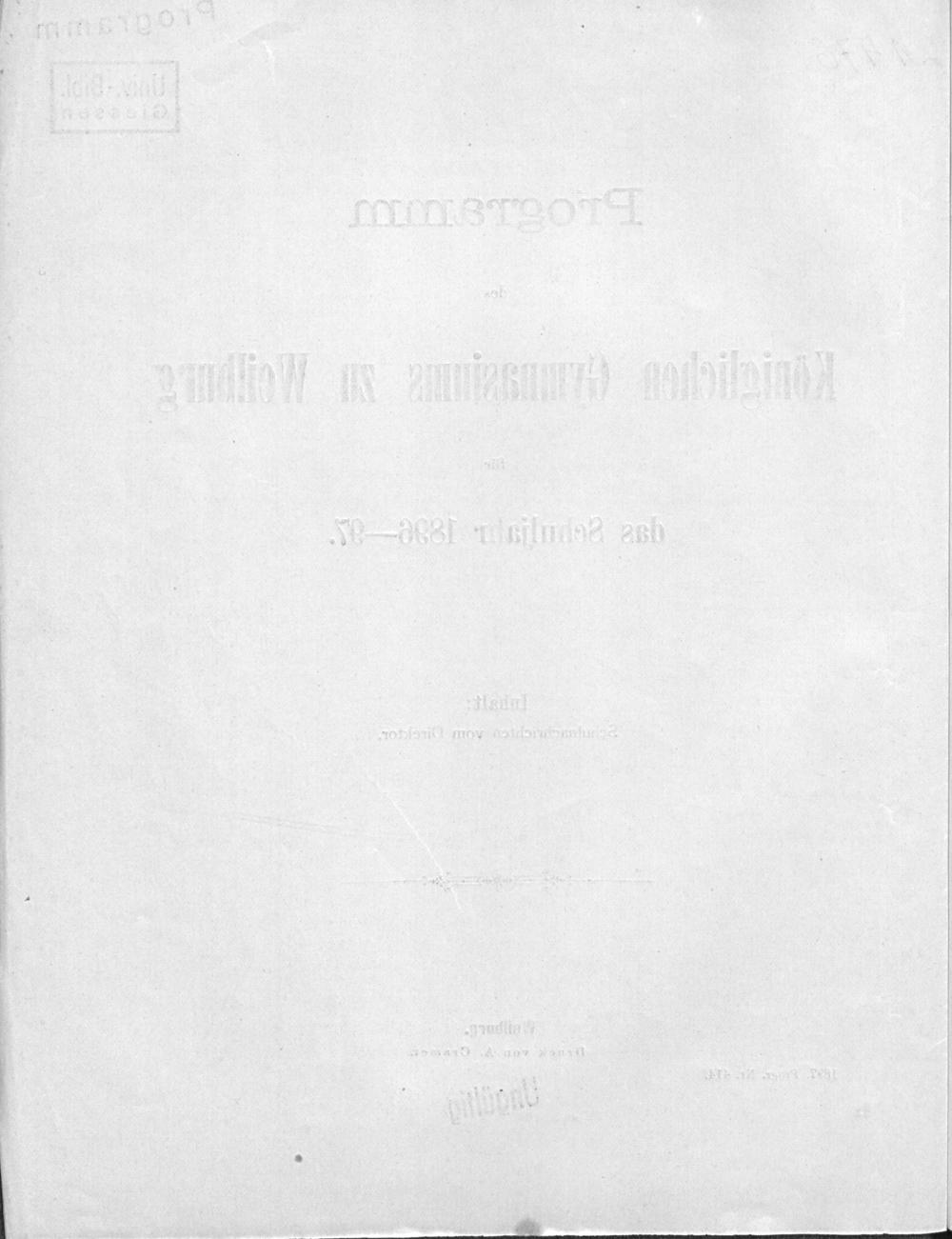 Programm des Königlichen Gymnasiums zu Weilburg