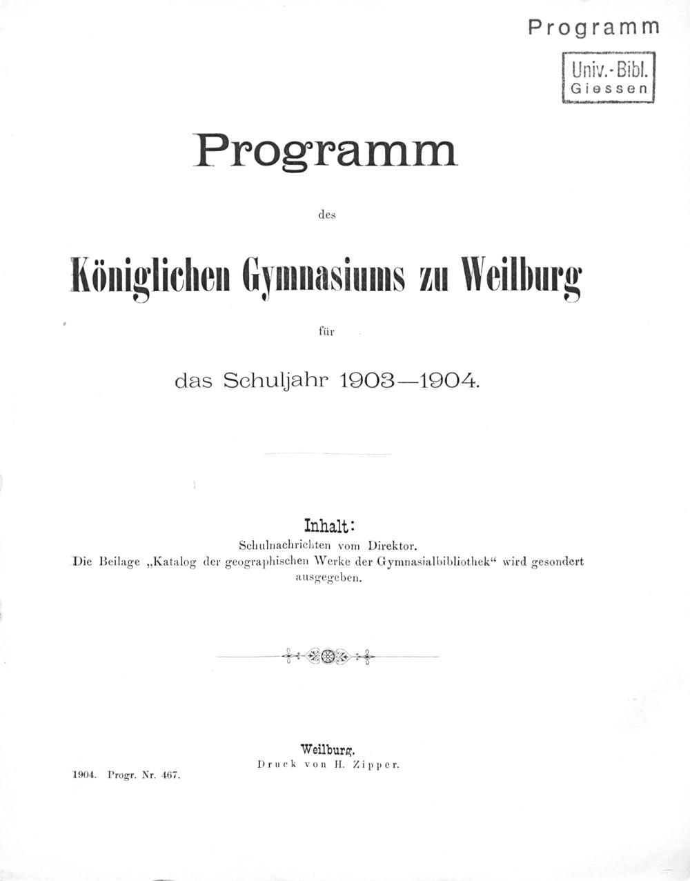 Programm des Königlichen Gymnasiums zu Weilburg