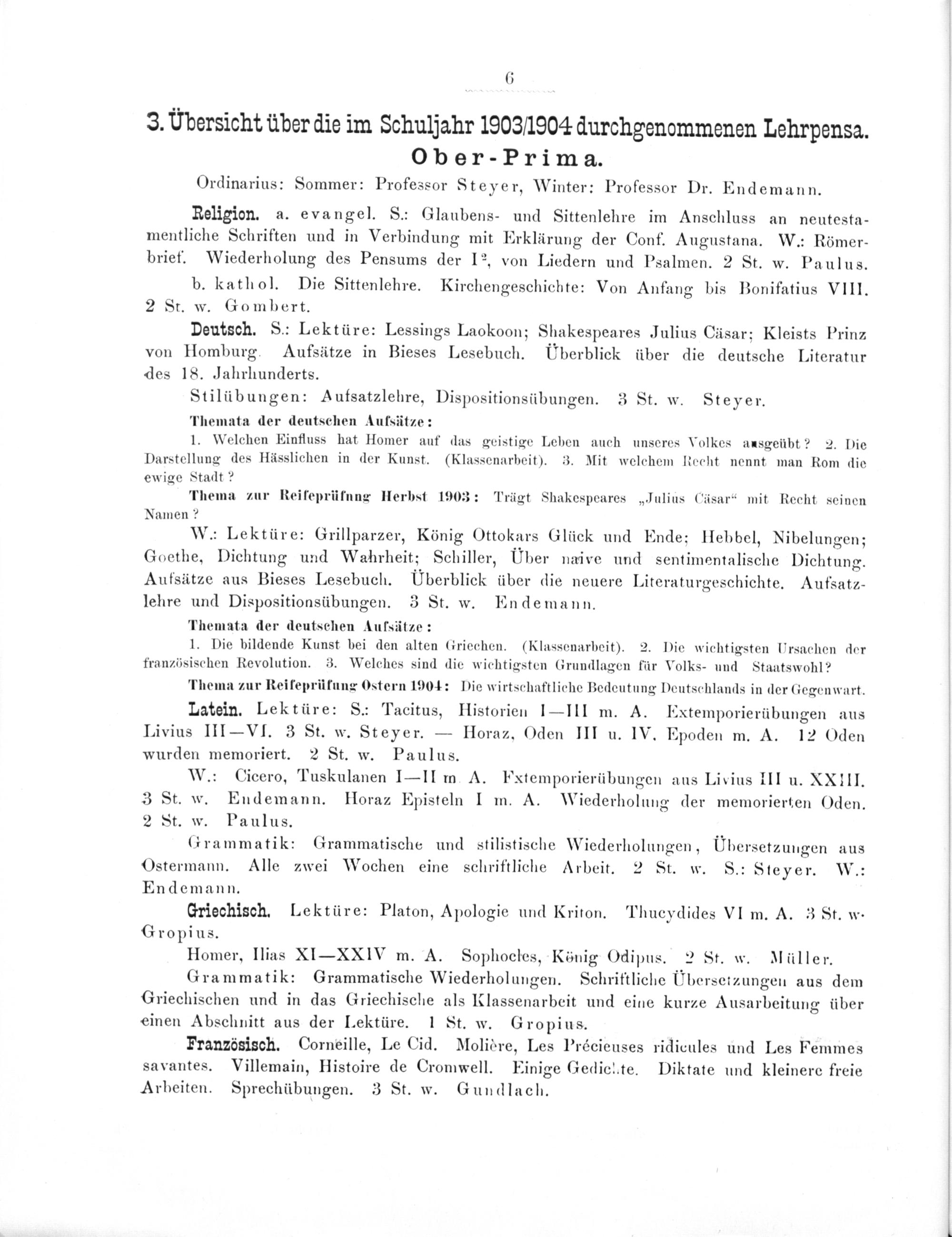 Programm des Königlichen Gymnasiums zu Weilburg