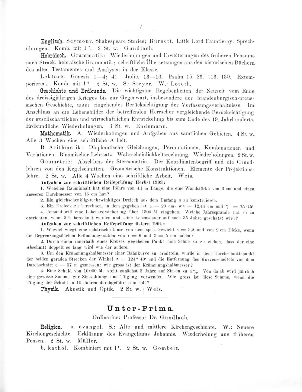 Programm des Königlichen Gymnasiums zu Weilburg