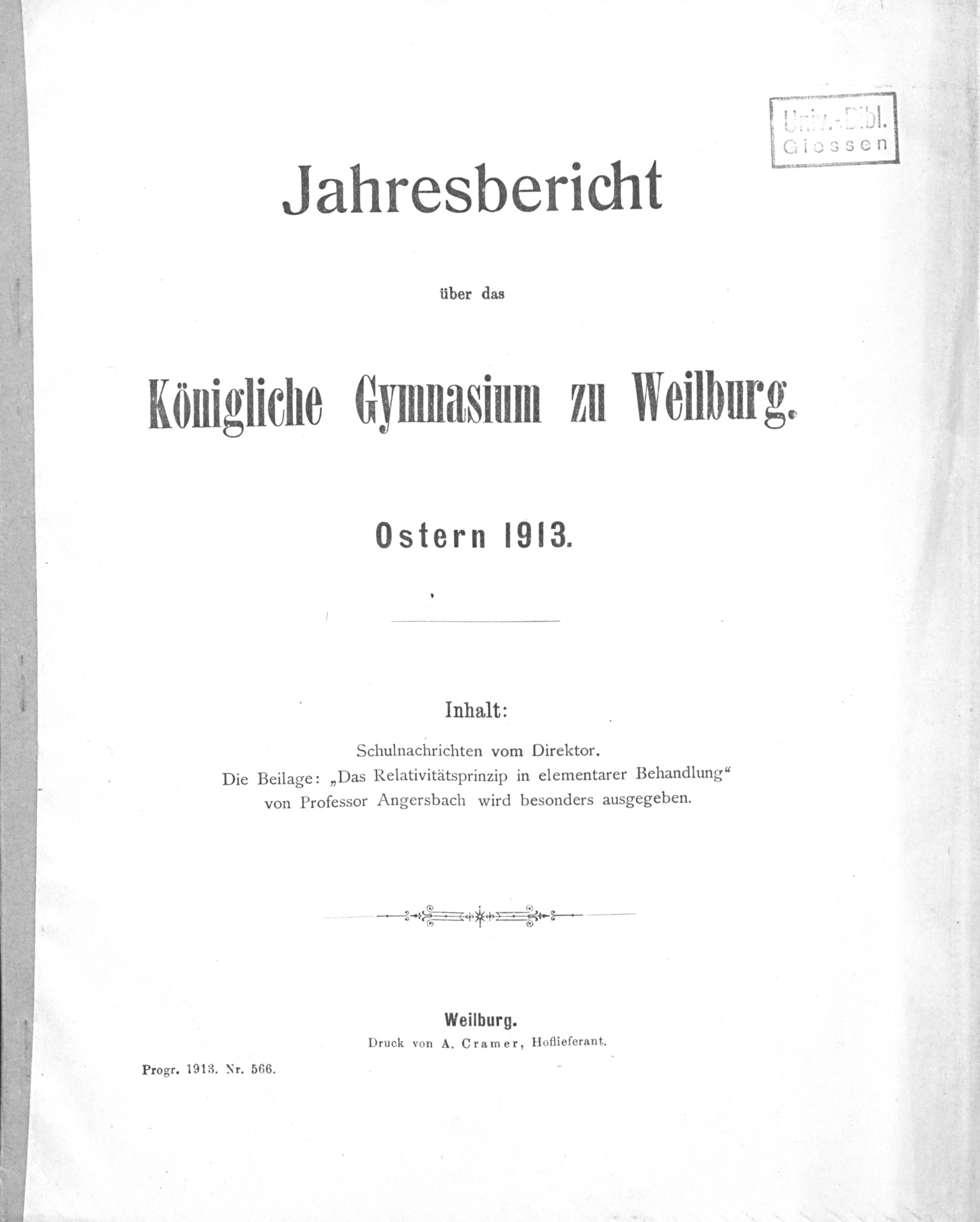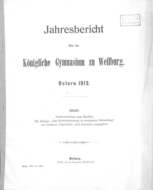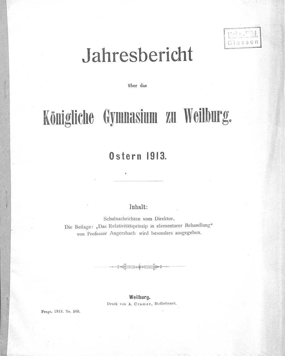 Jahresbericht über das Königliche Gymnasium zu Weilburg
