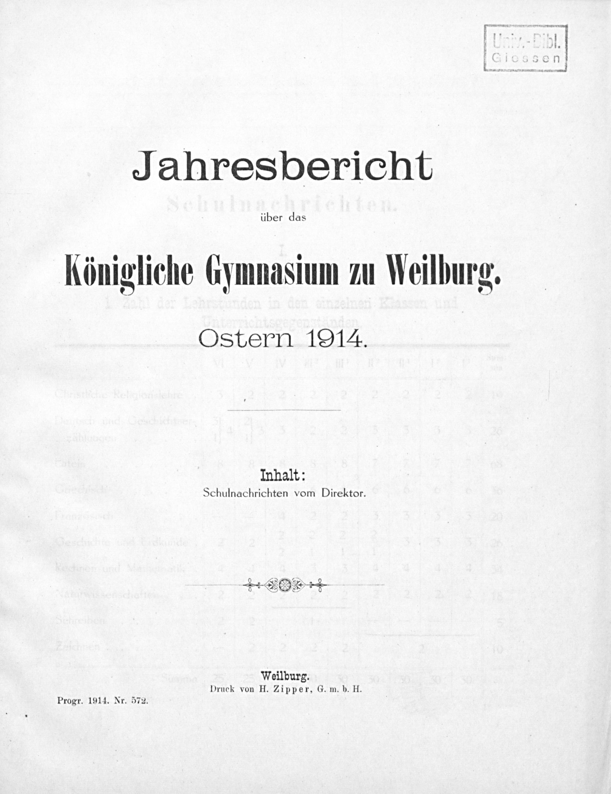 Jahresbericht über das Königliche Gymnasium zu Weilburg