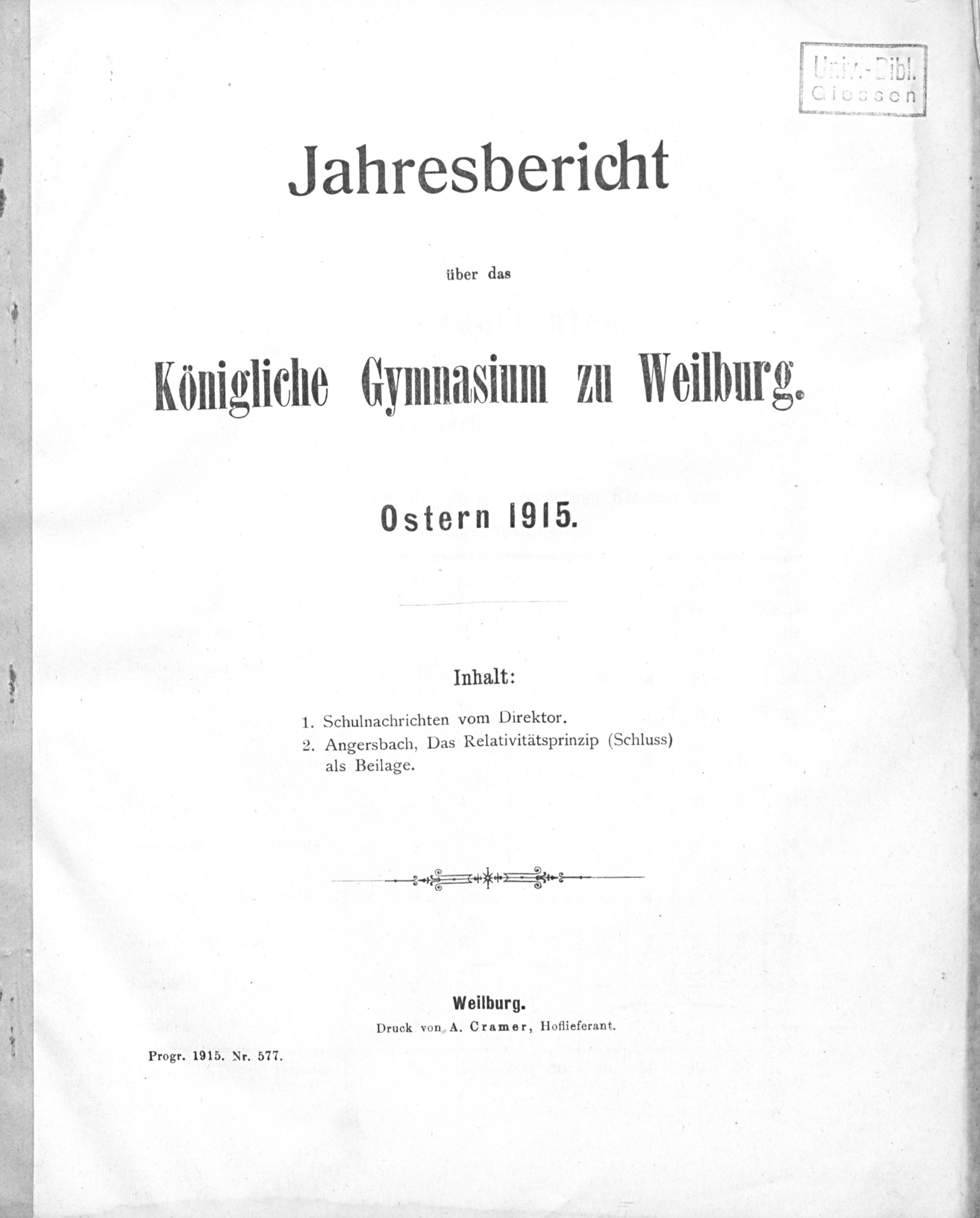 Jahresbericht über das Königliche Gymnasium zu Weilburg