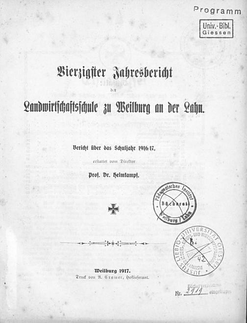 Jahresbericht der Landwirtschaftsschule zu Weilburg a. d. Lahn